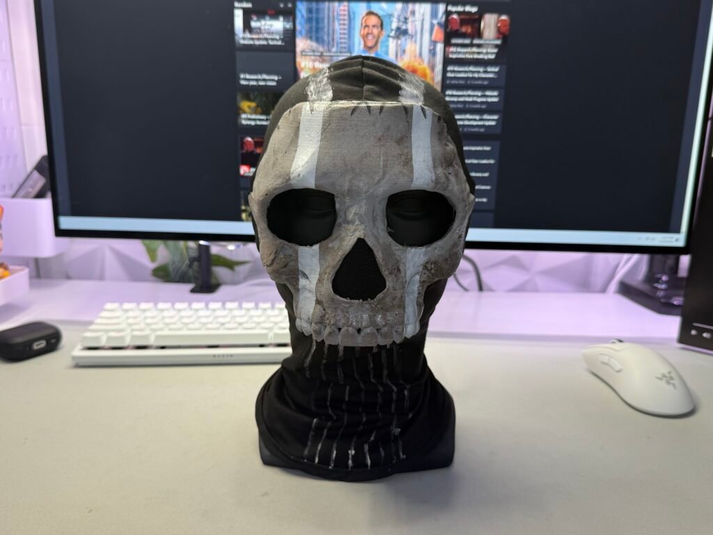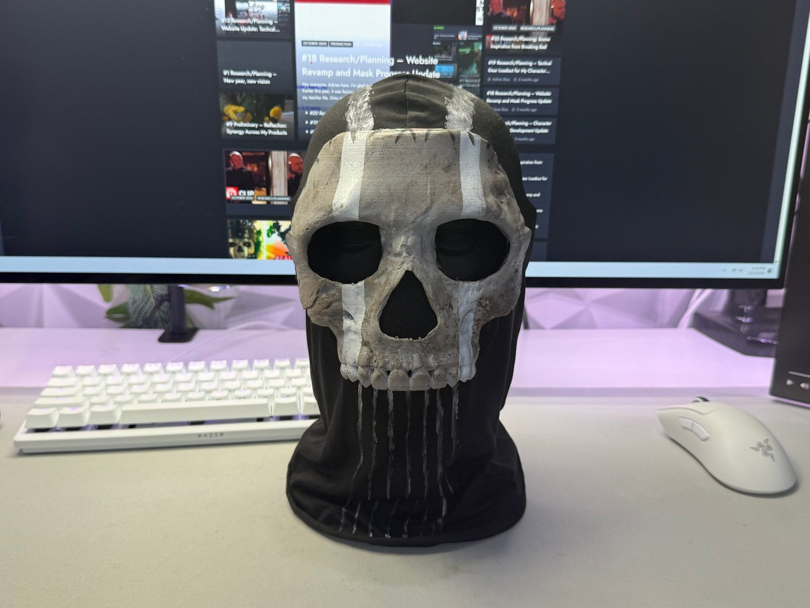 Hey everyone, Adrian here. The day has finally come. The Ghost mask arrived and I am honestly blown away. I took two photos for you all. One shows it sitting normally and the second shows how it looks when the balaclava is pulled tighter under the chin to give that more defined jaw shape. Seeing it in person already puts me in the mindset of the character I will be playing.