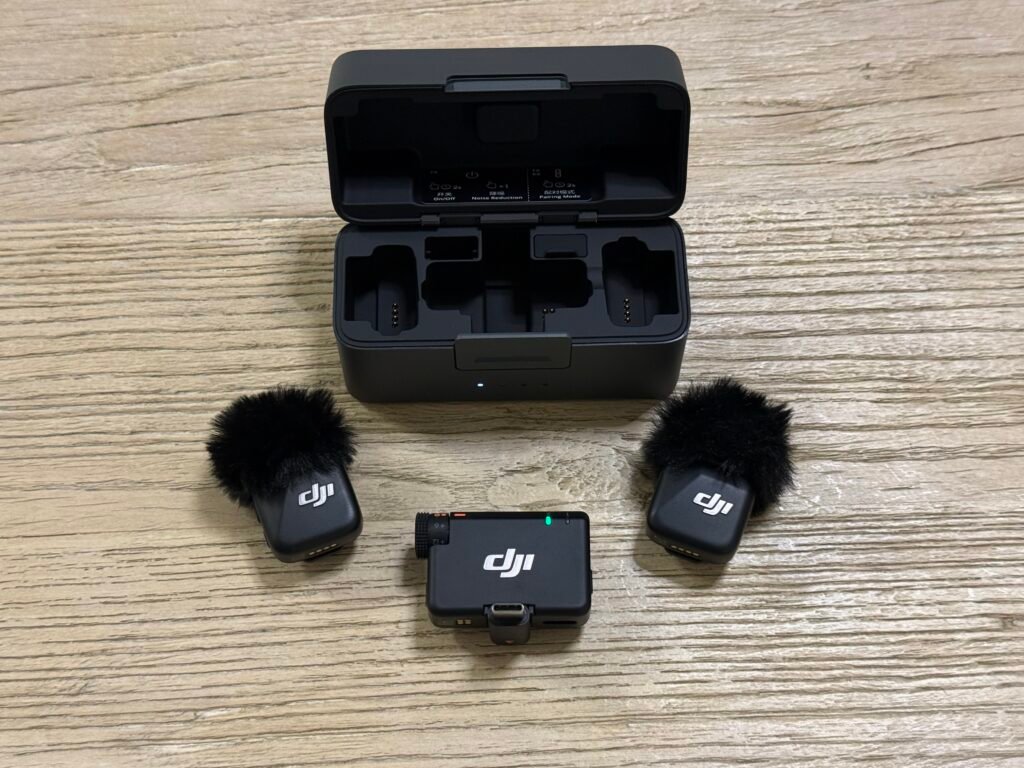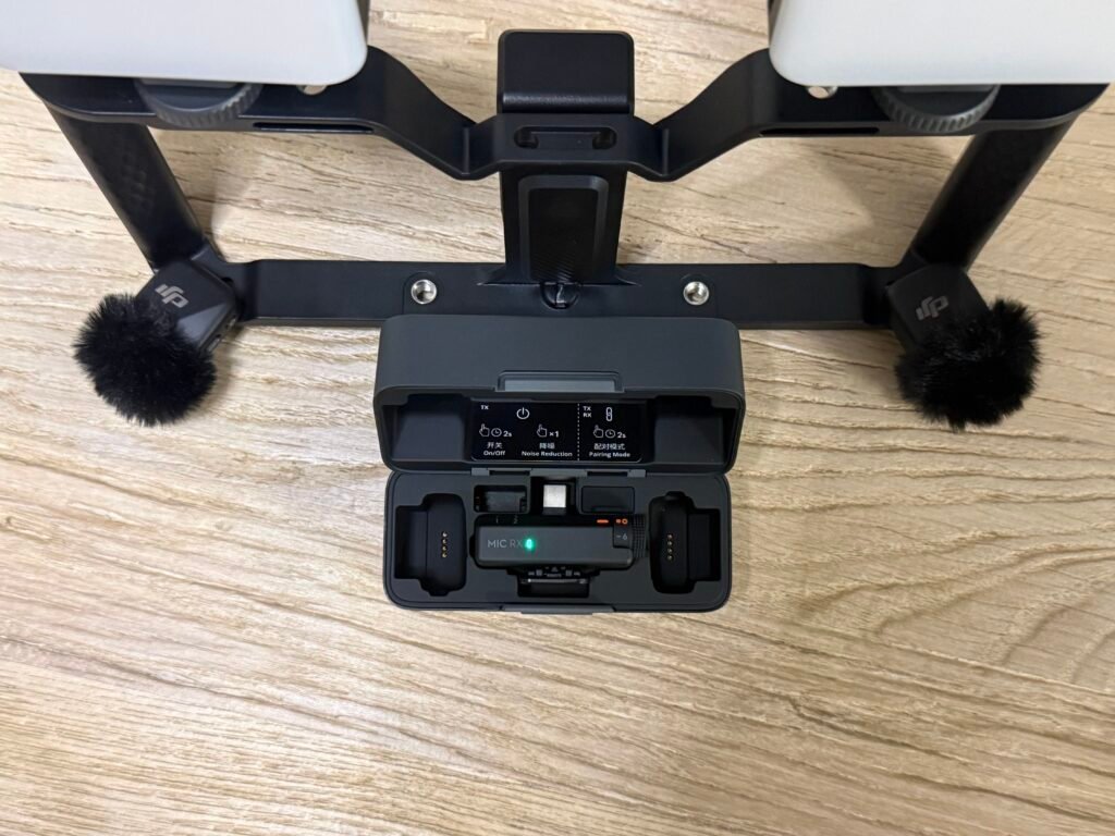 The most important upgrade by far is the DJI Mini microphone system for iPhone. This was not cheap, but it was necessary. One of the biggest mistakes we made in our previous project was audio. The beach scene was completely ruined by wind, and the mall scene had overpowering background noise. This mic setup has one of the best windproof designs I have seen, and the audio quality is on a completely different level. The mics can clip directly onto the phone cage when needed, but they can also be clipped onto actors during dialogue scenes, which gives us flexibility depending on the setup.