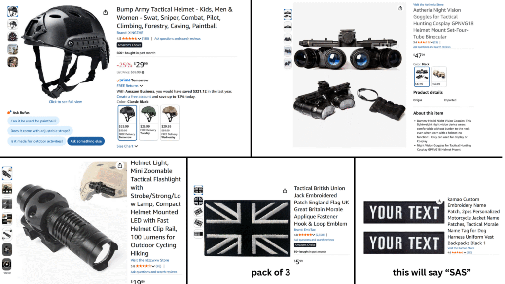 For the helmet setup, I am using a Bump Army Tactical Helmet which will be paired with replica GPNVG18 night vision goggles. I also included a helmet mounted flashlight for extra detail. On top of that, the helmet will feature a British Union Jack patch to match the SAS inspired look that Ghost is known for in the Modern Warfare series. A custom name patch will also be added and it will read SAS.