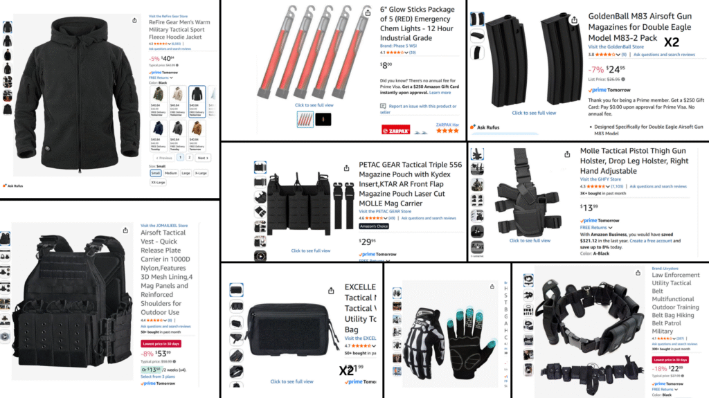 For the upper body, I selected a ReFire Gear tactical fleece jacket. This resembles the type of clothing Ghost wears, especially in his darker loadouts. Over the jacket I will be wearing a tactical vest with magazine panels, along with a triple magazine pouch in the front. Two prop airsoft magazines will be added to give the vest a full and authentic look. The video also recommended glow sticks on the vest for realism so I will be adding those as well to match the reference.